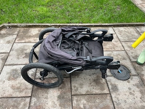 Verkaufe einen robusten 3-rädrigen Kinderwagen (Jogger) in Schwarz. Ideal für Spaziergänge und sportliche Aktivitäten. Leicht zu manövrieren dank großer Luftreifen, mit verstellbarem Verdeck und praktischem Ablagekorb. Gebraucht, aber gut erhalten und voll funktionsfähig. Normale Gebrauchsspuren vo ...