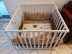 Aufsatz für Wickelkommode mit Auflage und abwischbaren Überzügen (2 Stück, selbst angefertigt). Mussten die Seitenteile erneuern, da das Holz nicht hielt (daher nicht lackiert). Die Überzüge können problemlos bei 30 Grad in der Waschmaschine gewaschen werden. Der Aufsatz hat folgende Maße: B 78 cm, ...