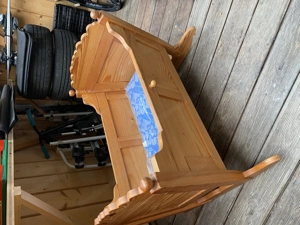 Baby- Puppenwiege Echtholz L 85,5 x B 67,5 x H 68 cm, inkl Matratze. Alter zirka 50 Jahre sehr gut erhalten. Zustellung möglich.