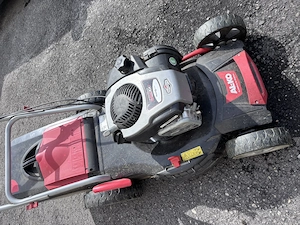 Rasenmäher ist im gutem Zustand, der Motor läuft tadellos. Lediglich der Keilriemen für den Antrieb ist vom Riemen gefallen. Geschickte Hände können das aber problemlos wieder einhängen.