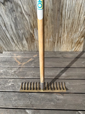 OKAY GARTENRECHEN - Der Gartenrechen Okay besitzt einem 170 cm langen Holzstiel aus Esche - Der Werkzeugkopf besitzt 14 Zinken GUTER ZUSTAND