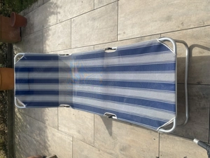 verkaufe diese blau weiß gestreifte Gartenliege Liege, muss noch etwas sauber gemacht werden, stand lange in Garage, wird wegen Nichtgebrauchs günstig abgegeben