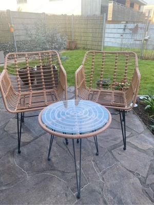2 wetterfeste Stühle und 1 Beistelltisch dazu.