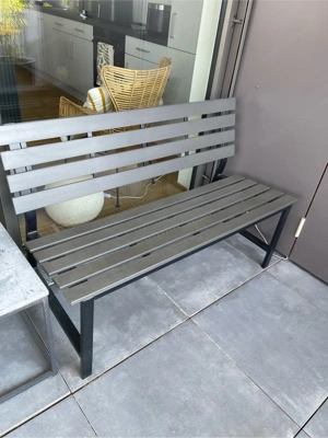Ich verkaufe eine Gartenbank aus Stahl und künstlichem Holz. B125 x H81 x T58 cm. Es handelt sich um die KLINT Gartenbank von JYSK. Neupreis ist aktuell 90 EUR. Im guten Zustand.