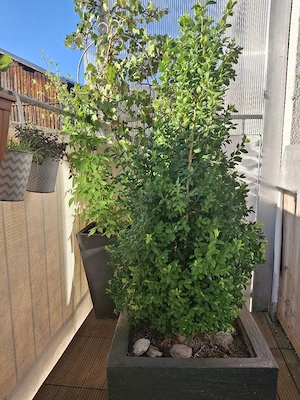 im topf, ca. 2m hoch, wird Ca 2,5m hoch. kann direkt in den Rasen gesetzt werden. winterhart.