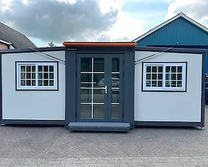 Mobiler Wohncontainer Tiny House, Typ: Deluxe (19 Fuß x 20 Fuß) Année: 2023 Anzahl der Fenster: 9 Toiletten: ja; Einzelgewicht: 3350 kg; Gesamtlänge: 5860 mm; Gesamtbreite: 6220 mm; Gesamthöhe: 2550 mm; Beschreibung: Ausgestattet mit isolierten Wänden und Dach; Badezimmer mit Toilette und Dusche; ...
