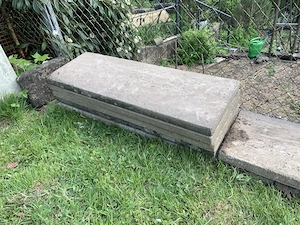 Ca. 110 Stück gebraucht zu verkaufen. Ca 50 Stück unter der Terrasse trocken aber staubig gelagert. Der Rest war auf Kies verlegt. 1,50 Euro das Stück, Selbstabholung nach Vereinbarung