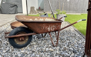 Biete hier eine Alte Schubkarre aus Metall zum Bepflanzen oder sonstige Dekozwecke. Löcher im Bodenbereich vorhanden! Zur Selbstabholung!
