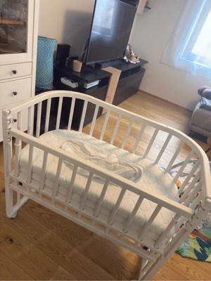 Verkaufen unser geliebtes Beistellbett der Marke Babybay, da es leider zu klein geworden ist. Inkl. 2 Matratzen und 1x Leintuch Maße sind: 94x50cm