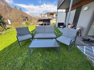 Verkaufe eine Gartengarnitur 1x Tisch (110x60cm) 1x Sitzbank 2x Stühle inkl. Sitzpolster & Lehne wenig gebrauchsspuren kaum gebraucht preis ist VHB! für selbstabholer