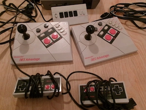 1 Stk. Nintendo Entertainment System - European Version, + 2 Stk. Nintendo Controller + 1 Stk. Nintendo Nes Four Score + 2 Stk. Nintendo NES Advantage Joystick Controller