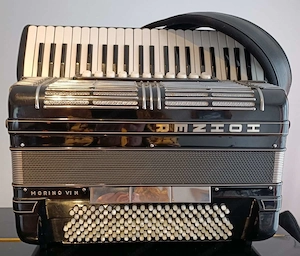 Hohner Morino VI N 45 Diskanttasten, 5-chörig, davon 2 im Cassotto. 11 Diskantregister mit Kinn-Masterregister und Registerschaltung an der Rückseite. 185 Bässe, 3 Reihen Melodie-Bass, 3 Bass-Register mit zusätzlicher Registerschaltung am Bassdeckel. Balgschoner, und originale schöne Riemen. Topzustand, ...