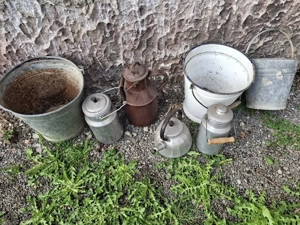 Ein Emailkübel,eine Email Milchkanne 2 Kübel verzinkt 2 Milchkannen Alluminiume