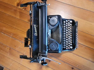Wunderschöne Original-Schreibmaschine von Rheinmetall (Werk Sömmerda), ca. 1930er 40er Jahre. Große Büro-Standardmaschine in klassischem Schwarz mit goldenem Schriftzug. QWERTZ-Tastatur, mechanische Typenhebelmaschine. Die Maschine ist sehr massiv, in gutem Erhaltungszustand mit altersgerechten Gebrauchsspuren ...