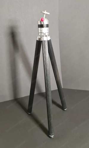 Antikes Foto-Stativ, schwarz mit 3-fach ausziehbarenTeleskopstangen aus Messing, Dreibein, Befestigung der Kamera: Drehgewinde mit Kugelkopf, originaler Lederköcher inklusive