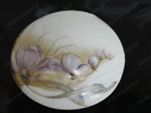 Eine wunderschöne Deckeldose von Hutschenreuther mit zarten Blumen-Motive zu verkaufen. Die Form und auch das Innere der Dose, erinnern an eine Muschel. Guter Zustand keine Chip oder Risse, Höhe ist 7 cm Durchmesser beträgt 11,5 cm. Auf der Internetseite befinden sich mehrere Kennzeichnungen. Privatverkauf ...