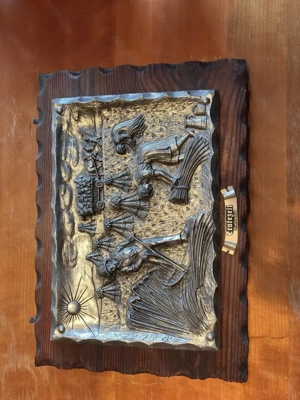 Wie genau dieses Kunstwerk gemacht wurde kann ich nicht sagen. Die Maße sind 40 x 28 cm (Holzrahmen auf dem es angebracht wurde).