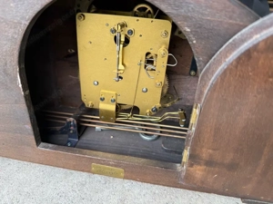 Kaminuhr Tischuhr mechanisch funktioniert Biete eine schöne alte Kaminuhr von Kienzle an. Die Uhr läuft und das Schlagwerk funktioniert ebenfalls. Aufgezogen wird sie mit einem Schlüssel. Das Gehäuse ist aus dunklem Holz mit dekorativen Verzierungen an den Seiten. Dadurch wirkt die Uhr sehr klassisch ...