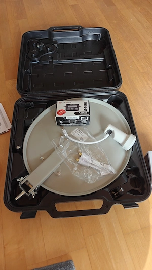 neue Antenne, fertig eingerichtet und verkabelt. Mit Stativ, nur zum Testen benutzt. Inkl. langem Koaxialkabel. und Fensterdurchführung.