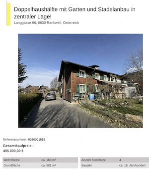 Hallo ihr Lieben wir sind eine Familie mit zwei Kindern und auf der Suche nach einem Haus in Klaus, Weiler, Koblach, Rankweil oder in der näheren Umgebung. Wir wünschen uns ein Zuhause, in dem unsere Kinder aufwachsen können ein Ort mit Platz zum Leben, Spielen und Wohlfühlen Dabei muss es ...