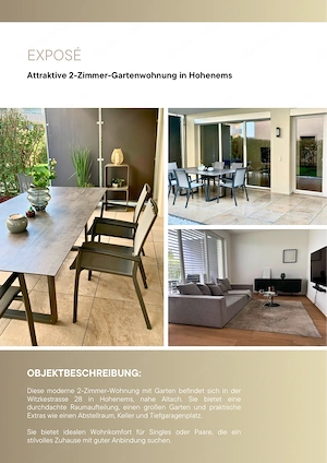 Diese moderne 2-Zimmer-Wohnung mit Garten befindet sich in der Witzkestrasse 28 in Hohenems, nahe Altach. Sie bietet eine durchdachte Raumaufteilung, einen großen Garten und praktische Extras wie einen Abstellraum, Keller und Tiefgaragenplatz. Sie bietet idealen Wohnkomfort für Singles oder Paare, ...