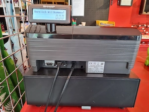 Typ Sharp ER A-411 mit Kassenschublade und Bonrollen, voll funktionsfähig