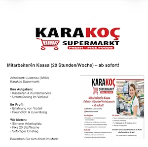 !!!wir suchen dich ab sofort !!!! Einsatz Ort in 6890 Lustenau Kasse und Regale ....
