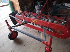 Bartohlet Bandrechen 180cm gebraucht Arbeitsbreite: 180cm 2 Bänder 3 Zinkenpaare pro Halter 2 lenkbare Fronträder Gesamtbreite: 240cm Gewicht: 200Kg inkl. Heuersteuerung passend für Rapid Geräte mit großem oder kleinem Anbaustutzen.