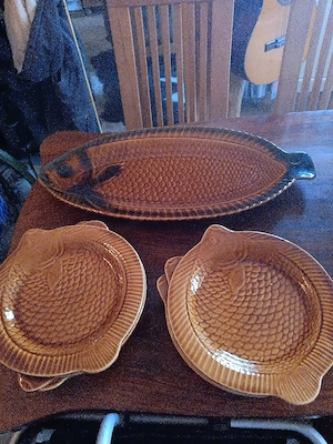 und unbenutzt. 1 grosse Anrichte Platte u.6 Teller dazu. wunderschön Passend für Karfreitag und Aschermittwoch.