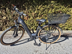 KTM E-Bike, wenig gefahren, rostfrei, sehr guter Zustand, mit folgender Ausstattung: + Mittelmotor + Federgabel + gefederte Sattelstütze + Nabenschaltung mit 7 Gängen + inkl. Korb laut Abbildung + sehr gute Beleuchtung vo+hi + stabiler Seitenständer + gute Reifen + Leichtlaufrad (auch ohne Motorunterstützung) + ...