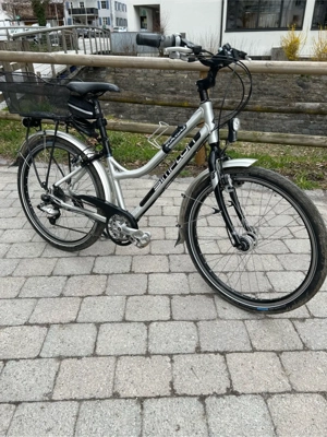 Sehr guter Zustand, realistische Reichweite ca 80-100 km (je nach Fahrweise), generalüberholt vom Fachhändler (neue Kette, neuer Zahnkranz, neue Bremsbeläge, neues Hinterrad usw.). Mit abnehmbarem Korb. Rahmengrösse 58, Räder 28. Kein Tausch, nur gegen Barzahlung bei Abholung.