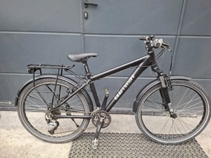 Wenig benutztes Trekkingbike Aluminiumrahmen Federgabel vorne Felgenbremsen Gepäcksträger Integriertes Fahrradschloss Schutzblech Seitenständer Nabendynamo mit Beleuchtung (Vorderlichthalterung leider angebrochen) Stand immer in der Garage