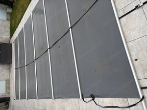 Zu verkaufen eine neuwertige Pool Abdeckung zu verkaufen. L 7,50m b 4,10m samt Winterstangen 5stück.