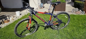 Gery Fischer Big Sur Fahrrad für kleinere Damen größere Kinder, Farbe: blau rot Rahmengröße 40cm, 26 Zoll Kettenschaltung Felgenbremse 24 Gänge LX Deore Shimano Schaltung vorne XT Deore Shimano Schaltung hinten gut gepflegt, hohe Gangschaltung muß eingestellt werden, wegen nicht Benützen zu verkaufen ...