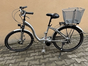 KTM E-Bike, wenig gefahren, rostfrei, sehr guter Zustand, mit folgender Ausstattung: + Mittelmotor + Federgabel + gefederte Sattelstütze + Nabenschaltung mit 7 Gängen + inkl. Korb laut Abbildung + sehr gute Beleuchtung vo+hi + stabiler Seitenständer + gute Reifen + Leichtlaufrad (auch ohne Motorunterstützung) + ...