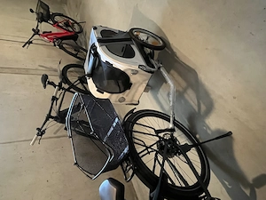 Großer praktischer Anhänger fürs Fahrrad War die letzten 3 Jahre als Transportmittel für meine mittelgroße Hündin im Einsatz Die Räder sind neu. Die Scheiben sind dicht , das Belüftungsnetz ist ganz und wurde zum Fußraum hin vergrößert für noch bessere Belüftung und Aussicht wenn der Hund im Platz ...