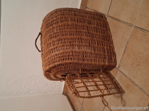 Körbchen und Transportkorb für Katzen oder kleine Hunde. Naturgeflecht mit natürlicher Sauerstoff-Zufuhr. Langlebig und stabil. Einzeln abzugeben um Euro 25 für Box und Euro 15 für Körbchen. Zusammen um Euro 30.