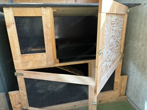 Hochwertiger Stall für Hasen oder andere Kleintiere zu vergeben, 2-stöckig mit 2 Kunststoffwannen, leicht zum Ausmisten, ganz leichte Gebrauchsspuren vorhanden Außenmaß: 152x93 cm, Höhe: 135 Nur für Selbstabholer !