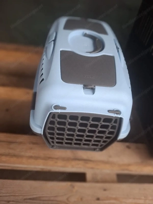 Verkaufe unsere Hundebox ferplast altas Höhe 48 Breite 49 Länge 68 Mit 2 Futternäpfe. Box nur 1 mal für eine Urlaubsfahrt gebraucht.