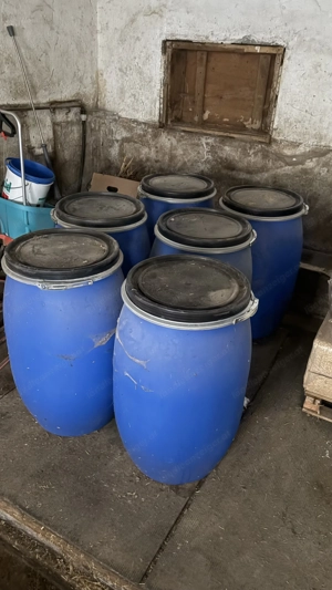 6 Fässer voll mit Bio Hühnermastfutter von Baywa, ca. 300 Kilogramm