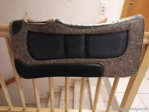 Neuwertiges Western Korrektur Pad aus Filz mit 3 Einschubleisten je Seite und Füllpads ca 80 x 40 80. - Martingal Gr WB Gummi und Leder Besatz 20.- Fliegenohren mit Fransen 10.- Neuwertiger Voltigiergurt Gr WB 25.-