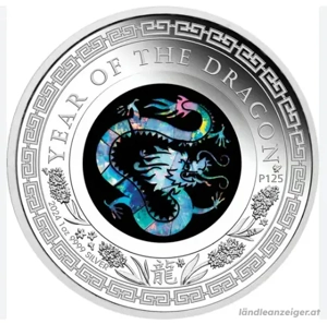 Diese Ausgabe der australischen Tierkreiszeichen Opal Serie ist 2024 dem Jahr des Drachens gewidmet. Die Münze wurde von der Perth Mint aus 1 Unze 99,99% reinem Silber in Polierter Platte geprägt. In der Mitte befindet sich das Design eines Drachens, gefertigt aus echtem australischen Opal. Umrahmt ...