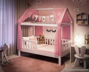 Wunderschönes Bett Kinder Hausbett inkl Rausfallschutz und Matratze